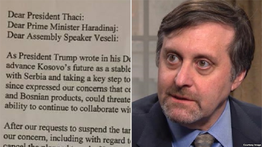Ambasadori amerikan në Prishtinë, Philip Kosnett u dorëzoi të martën udhëheqësve të Kosovës një letër të nënshkruar nga tre zyrtarë të lartë amerikanë që paralajmërojnë masa të reja ndaj Kosovës nëse ajo nuk pezullon tarifat ndaj mallrave serbe.