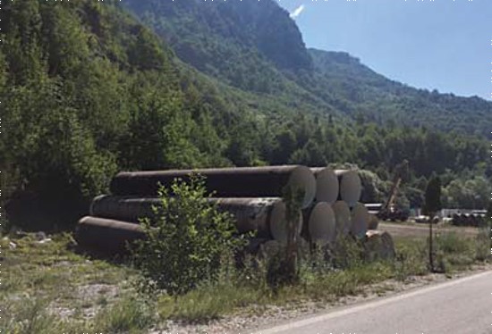 Kontrasti i dytë që shohim në këtë udhëtim. Më pas, pak metra më tutje, vihen re të gjithë tubat të cilët janë bërë gati për t’u vendosur në punë. Ndonëse nisi shiu, errësirën në rrugë nuk e shkaktonte mungesa e diellit, por pikërisht kontrasti i zymtësisë së betonierëve, tubave dhe ekskavatorëve, pluhurit që po nxirrnin në rrugë, përballë kaltërsisë e pastërtisë së lumit të Valbonës. Në 25 km rrugë që përbëhet e gjithë gryka e Valbonës, janë disa kantiere ndërtimi që po punojnë, në kulmin e sezonit veror, si “bisha” përballë së bukurës natyrë, që të huajt kanë marrë udhën ta vizitojnë.