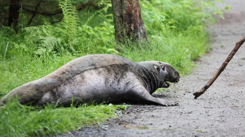 Një fokë është parë dje duke shëtitur në parkun Shubie në Dartmouth të Halifax. Menjëherë sapo është konstatuar fakti, janë lajmëruar zjarrfikësit dhe policët, të cilët kanë rrethuar vendin për ta mbajtur atë në distance nga kalimtarët dhe qentë që shetisnin atypari në shoqëri të kalimtarëve. U thirr gjithashtu një veteriner i cili injektoi një qetësues përpara se foka të transportohej sërish drejt brigjeve të Atlantikut. Askush nuk ishte në gjendje të shpjegonte se si gjitari ka mundur të përshkojë kilometrat që ndanin parkun nga bregu i oqeanit.