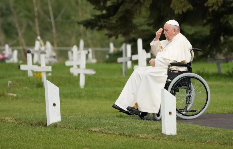 “Sot në Maskwacîs, territor i Traktatit 6, që është tokë tradicionale e First Nations dhe Metisëve, Shenjtëria e Tij Papa Françesku pranoi abuzimet e kryera në shkollat rezidenciale, të cilat, për popujt autoktonë të të gjitha rajoneve të vendit, kanë rezultuar me shkatërrimin e kulturës së tyre, humbjen e jetëve njerëzore dhe trauma të përjetshme. Shenjtëria e Tij kërkoi ‘falje për të këqiat e kryera nga shumë të krishterë ndaj popujve autoktonë’.