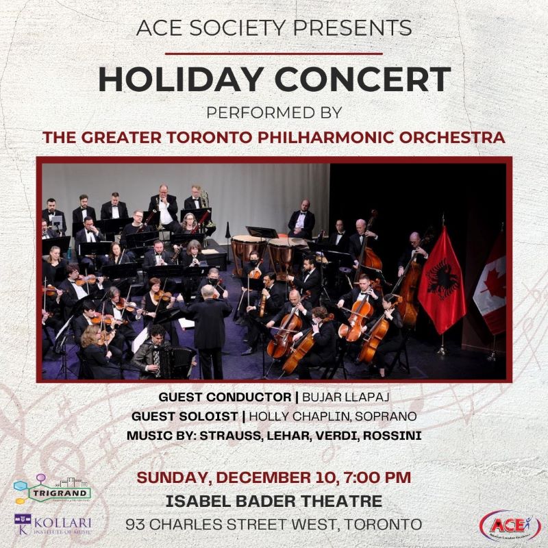 Artisti i mirënjohur shqiptaro-kanadez, një ndër ambasadorët më të denjë të artit dhe kulturës shqiptare jo vetëm në Kanada, por edhe më gjerë, dirigjenti Bujar Llapaj, të dielën e kaluar, më 10 dhjetor, ka performuar për herë të parë në një koncert të organizuar në metropolin e Kanadasë Toronto, ku jeton dhe shumica dërrmuese e komunitetit shqiptaro kanadez. Koncerti, i emërtuar “Holiday Concert” dhe i organizuar nën kujdesin e Albanian Canadian Excellence Society në bashkëpunim me Drejtorin Egzekutiv të Greater Toronto Philharmonica Orchestra, u zhvillua në sallën e Isabel Bader Theatre (University of Toronto). Si sponsorë për aktivitetin kanë kontribuar edhe Kollari Institute of Music dhe kompania Trigrand.