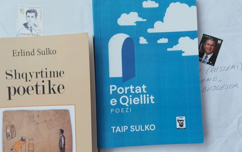 I sapokthyer nga “toka e premtuar”, në shtëpi më prisnin dy zarfa me një premtim të mbajtur. Taip Sulko më dërgon librin e tij poetik “Portat e qiellit”, së bashku me librin me studime “Shqyrtime poetike”, të djalit të tij, Erlindit. Mysafirët e rinj të bibliotekës sime ishin: atë e bir.