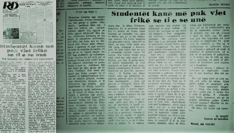 30 vjet më parë, ditë më ditë! E mërkurë 20 shkurt 1991. Në gazetën RD botoja këtë përjetim të shkruar, në pamundësi për ta filmuar e transmetuar në ekran. Televizioni Shqiptar, me urdhër nga lart, nuk lejonte asnjë operator e kamera dokumentari, të dilte nga godina e TV.