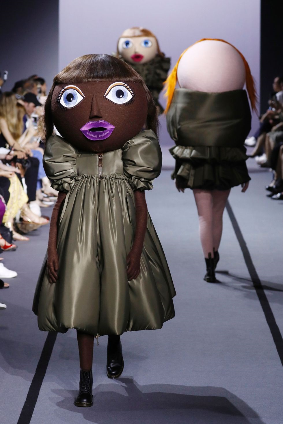 Shtëpia franceze e modës Viktor & Rolf në 2017 nxorrën modelet duke mbajtur një kukull gjigante në kokë.