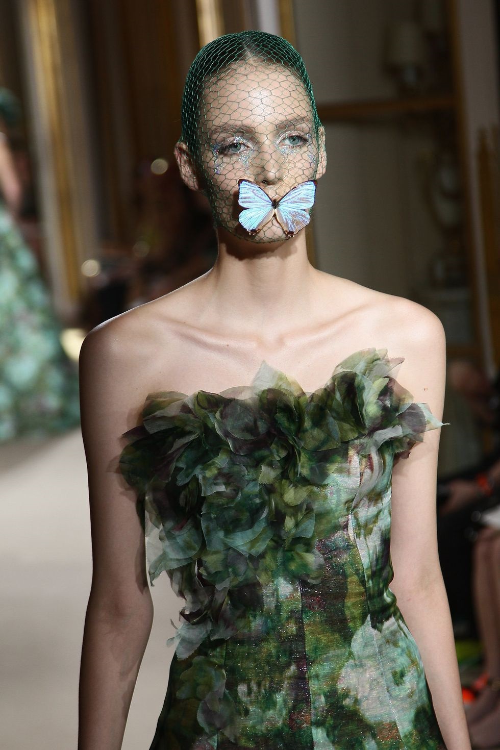 Koleksioni i 2012 i Giambattista Valli dilte nga përrallat. Aty shihje plot aksesorë të pazakontë si kjo flutur delikate që mbyll këtë gojë.