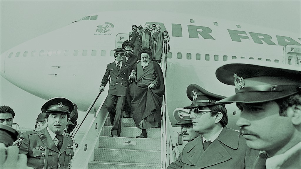 Më 1 shkurt një avion Boeing 747 i Air France, në të cilin ishte e ndaluar të shërbehej alkooli, aterroi në Teheran. Avioni erdhi nga Parisi dhe në bord kishte prijësin e opozitës iraniane në ekzil Ajatollahun Ruhollah Khomeini. Bashkë me të ishin nja 50 bashkëpunëtorë të tij dhe 150 gazetarë. Para se të aterronte avioni në Teheran, revolucionarët iranianë ia dhanë një gazetari gjerman një zarf dhe e porositën ta ruajë mirë. Revolucionarët frikësoheshin se pas aterrimit mund të arrestoheshin nga forcat që ishin besnike ndaj Shahut Mohamed Reza Pahlavit, i cili kishte braktisur vendin. Nuk ndodhi asgjë. Miliona njerëz e pritën Khomeinin në Teheran.