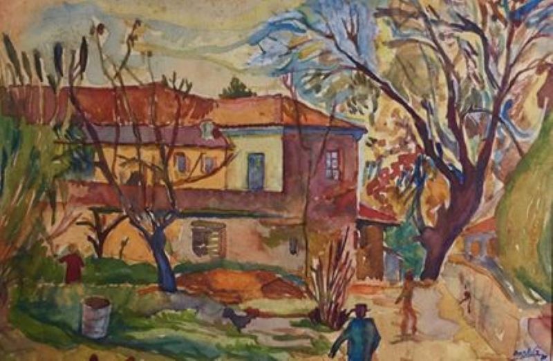Në tablonë më poshtë, realizuar nga artisti shijakas Dash Gurabardhi, shihet shtepia e gjyshit tim, mani i madh dhe çatia e dhomës së nënë Kizes.