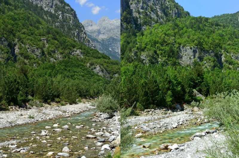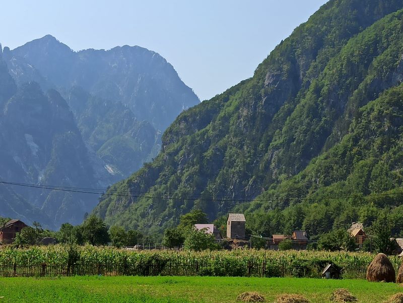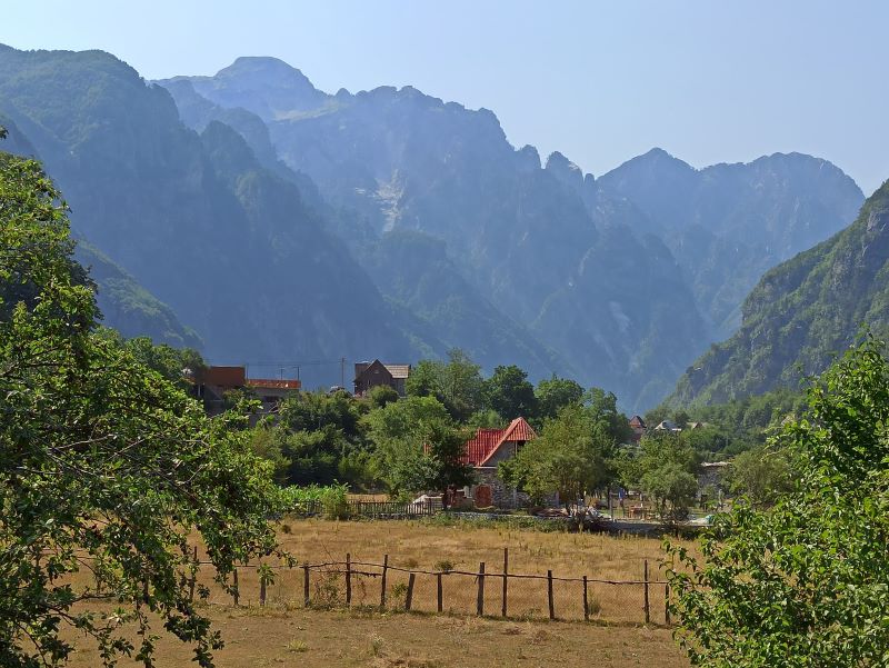 Thethi në “gropë”, në ultësirën e lumit të Shalës, Ndërlysajt etj. ka një magji që nuk e bjerr kurrë, një harmoni e përkryer e pyjeve të ahut e pishës, lumit gjithë freski të Shalës me Bjeshkët e Namuna, që kësaj ane shfaqen kryekrejet me masivin e malit të Radohinës, ndër malet shqiptare më të fotografuar. Një madhështi shkëmbore si në mite e legjenda që të le pa fjalë, le të jesh malësor e bir malesh. Mbi kreshtat e saj ka qenë varur jetë e banorëve për shekuj, kurse sot po krijohet një realitet krejt ndryshe nga mbijetesa.