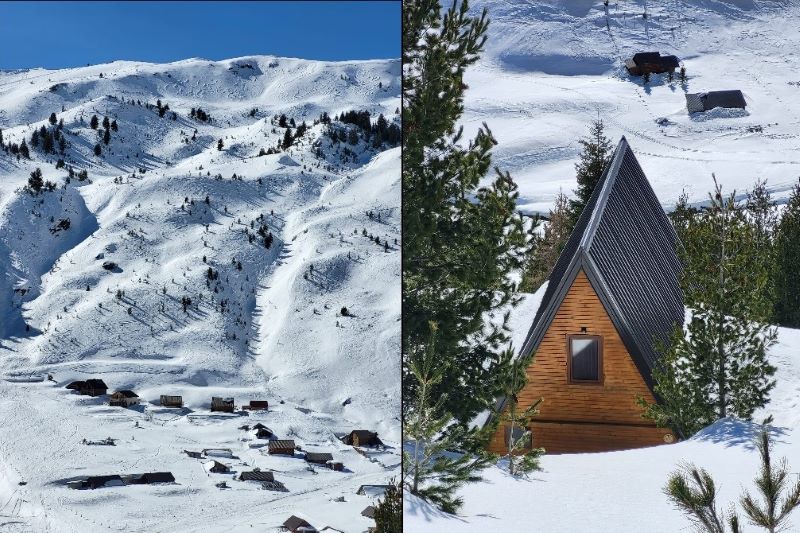 Lart mbi Junik, në një kthesë në mes të malit, lamë veturën dhe filluam ngjitjen. Në fillim rruga është e hapur nga makinat speciale për shtypjen e borës, nga vendi i quajtur Gropa e Erenikut ngjitja bëhet më sfiduese. Banorët e kësaj zonë meritojnë një lavdërim të madh për kasollet e ndërtuara buzë alpeve: i kanë ndërtuar me shije, kryesisht me dru dhe gurë, kësisoj ato harmonizoheshin me natyrën. Çfarë dallimi me shëmtitë arkitektonike në Brezovicë!