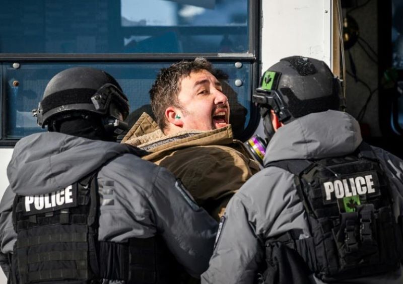 Pas dekretimit të gjendjes së jashtëzakonshme dhe ndërhyrjes sot (18.02) të shtatë lloj shërbimesh të ndryshme policore në zonën e Parliament Hill në Ottawa, bilanci që kanë sjellë mediat në mbrëmje është mbi 100 të arrestuar nga radhët e manifestuesve. Sot, për shkak të operacionit policor të planifikuar nuk u zhvillua as seanca në Dhomën e Komunave, ku do të vazhdonte ai që konsiderohet si “debat historik” rreth aplikimit për herë të parë në historinë e Kanadasë nga ana e qeverisë federale të Ligjit të Masave Urgjente, të miratuar para 34 vjetëve. Në disa tarraca godinash, pranë Parliament Hill, janë parë të vendosur edhe snajperë si dhe mbi turmën e protestës dronë që filmonin.