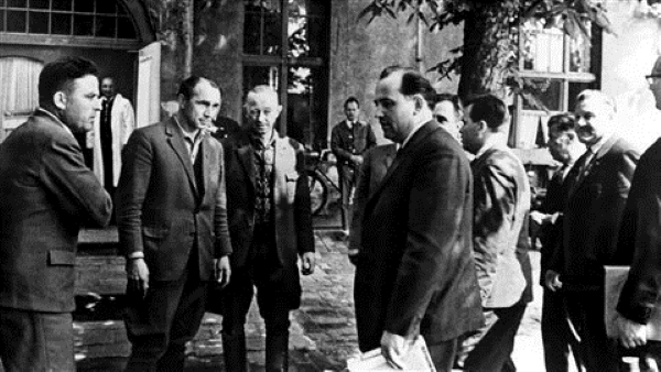 Gorbaçovi (djathtas) duke shoqëruar një delegacioni nga Moska gjatë një vizite në Stavropol, 10 qershor 1966 - Credit AFP