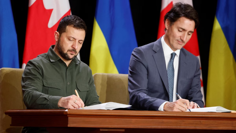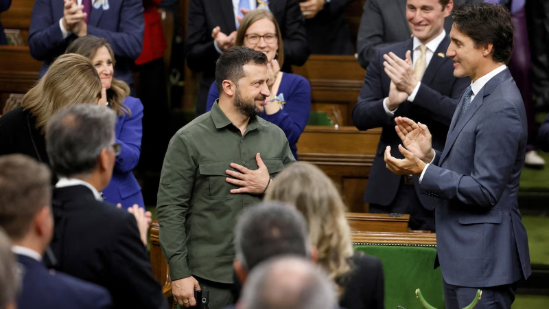 Gjatë ndalesës në Ottawa, ku Zelensky u mirëprit ngrohtësisht edhe në Dhomën e Komunave, kryeministri Justin Trudeau rikonfirmoi mbështetjen e qeverisë kanadeze për Ukrainën duke njoftuar edhe një ndihmë ushtarake shtesë prej 650 milionë dollarësh. Kjo paketë e re, i cila do të ofrohet në një periudhë tre vjeçare, do t'i furnizojë Ukrainës 50 automjete të blinduara, duke përfshirë automjete të evakuimit mjekësor. Kanadaja gjithashtu do të dërgojë ushtarakë për të trajnuar forcat ajrore ukrainase për drejtimin dhe mirëmbajtjen e avionëve F-16-të që janë transferuar tashmë atje.
