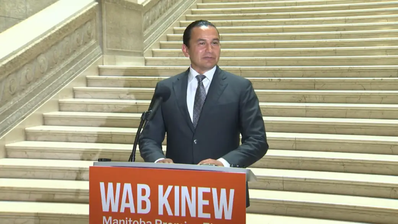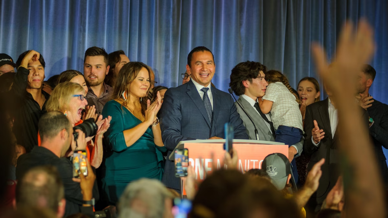 Pak para orës 23:00 të mbrëmjes së djeshme, kryeministri i sapozgjedhur, 41 vjeçari Wab Kinew, u ngjit në podium së bashku me familjen, për të deklaruar fitoren para mbështetësve të tij të shumtë që e brohorisnin me entuziazëm.