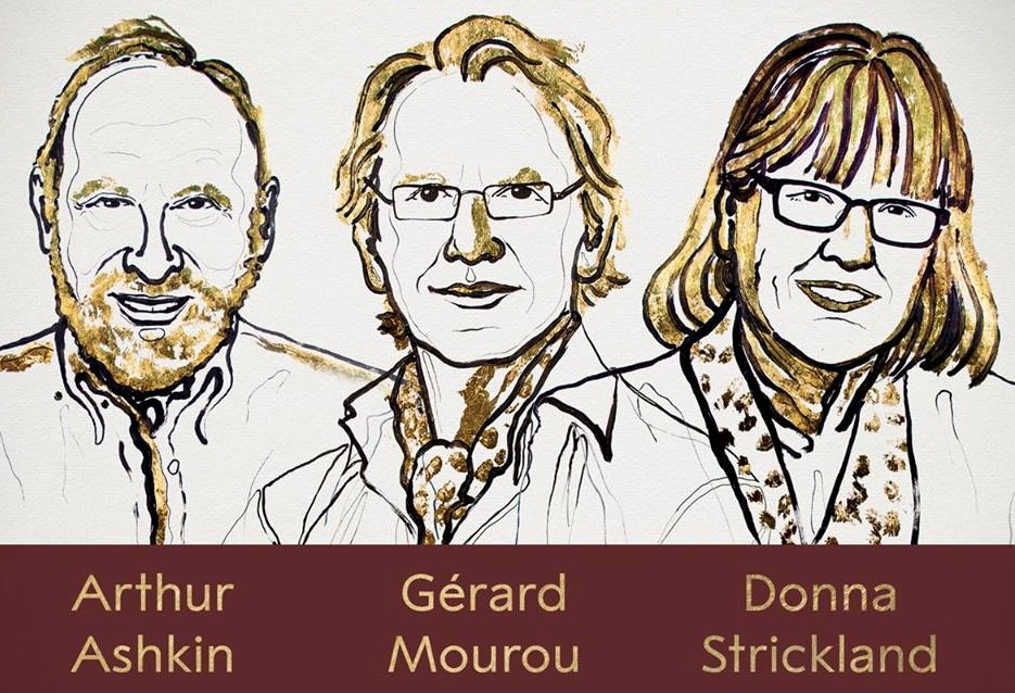 Në orën 11.45, komisioni përzgjedhës shpalli “Nobel prize physics 2018” fizikanët: amerikanin Arthur Ashkin, francezin Gérard Mourou dhe kanadezen Donna Strickland, për studimet dhe prodhimin e rrezeve laser me intensitet shumë të lartë dhe gjatësi vale ultra të shkurta, të cilat gjejnë përdorime të mëdha praktike në fusha si: studimi qelizor, kirurgjia optike dhe prodhimi i materialeve të precizionit të lartë.