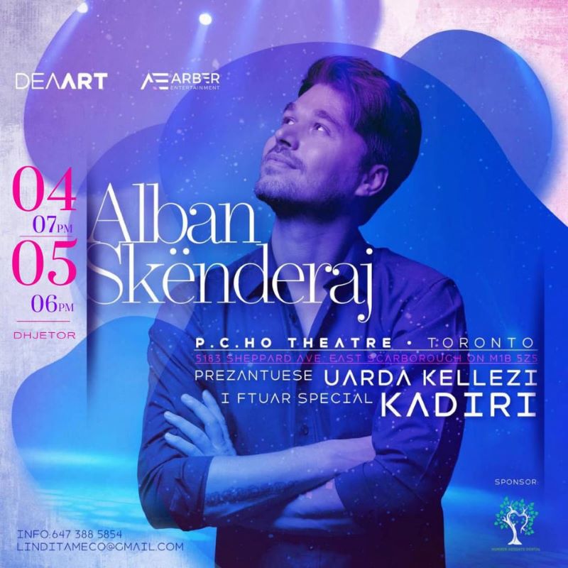 Një lajm i bukur për artdashësit dhe gjithë komunitetit shqiptar të Torontos dhe rrethinave. Pas anulimit të koncerteve të vjetshme të 28-29 Marsit, si rezultat i mbylljes që shkaktoi pandemia, më në fund kantautori i mirënjohur shqiptar Alban Skënderaj do të rikthet përsëri në metropolin kanadez për publikun shqiptaro-kanadez, pikërisht te shtunën në datën 4 Dhjetor 2021.