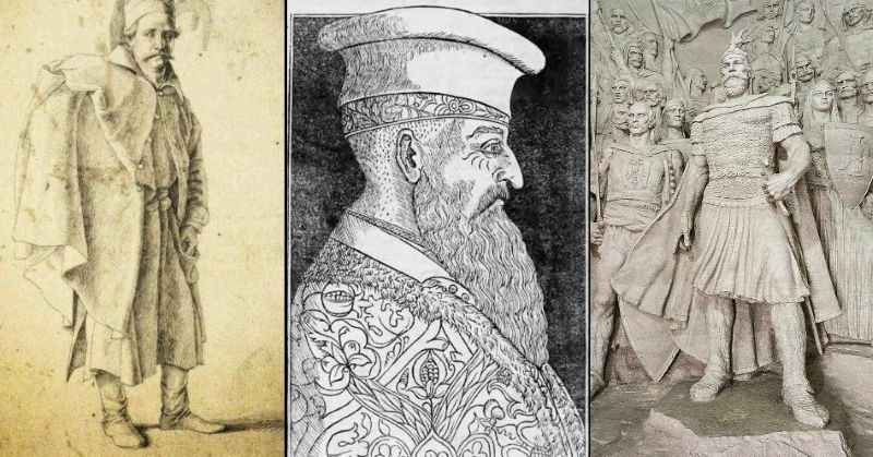 Po t’i referohemi shënimeve të Marin Barletit tek “Historia e Skënderbeut”, ai e përshkruan heroin trim, të fuqishëm, me trup të lidhur, madje “trupi më i bukur burrëror që mund të gjendej” dhe i veshur me petka të bukura luftëtari. Por askund te Barleti nuk përshkruhet me hollësi si vishej Skënderbeu në kohë lufte apo paqeje. Ndoshta ai e ka konsideruar një fakt të mirëqenë kostumin, duke i dhënë rëndësi më të madhe veprës dhe bëmave heroike. Merren në konsideratë petkat e tij, por ato vlerësohen vetëm si: të mira, shumë të mira, të çmuara, të shtrenjta, dhurata nga Venediku, Raguza, etj, por jo të përshkruara me detaje. Edhe historianët e huaj shënonin “me veshje sipas rangut”, që duhet të përkojë me tekstile të kadifenjta me një nga tre ngjyrat e lejuara hierarkike (sipas normave të kohës), dekoracione të arta dhe gëzof hermini të zgjedhur për mbretër. Në shënimet e tyre Skënderbeu edhe “në moshën 59-vjeçare ishte ende burri më i pashëm i Evropës: ndonëse ravijëzuar nga rrudha hallesh e dërrmimesh gjatë një jete të mundimshme, fytyra e tij kishte ruajtur një pjesë të bukurisë që kishte dhe mjekrra sapo kishte filluar t’i përhimej. Kur populli i Romës e pa të shfaqet para tij me pamjen mbretërore, me vështrim të ndritur nga gjenialiteti dhe guximi i tij i pamposhtur, veshur me kostumin e vet oriental të shkëlqyeshëm, armatosur me atë shpatë që kish dorezë floriri dhe qe bërë tmerri i armiqve, një duartrokitje e pafund shpërtheu për t’i uruar mirëseardhjen.” Shtojmë këtu edhe përshkrimin që i bën portretit të Gjergj Kastriotit një nga bashkëkohësit e tij i quajtur Petruzi në letrën dërguar Senatit venecian ku midis të tjerash nënvizon: “Kastrioti është i madh më tepër se madhësia e zakonshme e njeriut, i fuqishëm, muskuloz…” Artistët tanë nuk i janë larguar përshkrimeve për fizikun që vijnë nga dokumentimet e kohës. Ata kanë shfrytëzuar gjithë materialet e mundshme për të qenë sa më pranë të vërtetës. Pothuajse nga të gjithë ai vizatohet me sy shqiponjë, hundëshkabë, mjekërr e gjatë me majë në stilin kalorsiak, trup i lidhur, mbi kalin e tij të bardhë, me armatimet e tij të personalizuara etj. Ajo që lë vend për diskutime është veshja e tij.