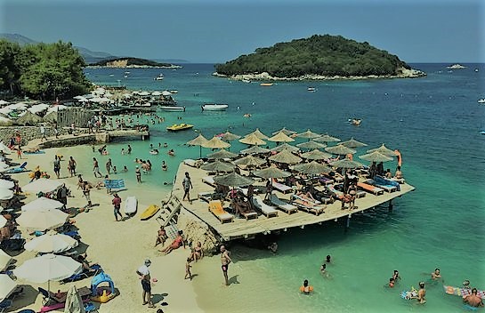 Nga kafja ku jam ulur shoh plazhin 100 - 150 metra më tej. Më bën përshtypje lëvizja e njerëzve. Ngjajnë si në një film me projektim të ngadalësuar. Pamja përcjell një lloj qetësie, përzier me nge, shkujdesje dhe përzëmërsi.